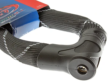Abus 8210 Steel-O-Flex Iven er en kraftig 8 mm kædelås i specialhærdet stål, der giver god tyveribeskyttelse af din scooter eller cykel. Låsen betjenes nemt, så du hurtigt får låst dit køretøj fast og kan komme videre uden bekymringer om tyveri. På Abus’ egen sikkerhedsskala fra 1-15 scorer kædelåsen 9 ud af 15 og giver derfor ekstra god sikring imod tyveri. Det slidstærke nylonovertræk beskytter effektivt cyklens stel imod ridser.