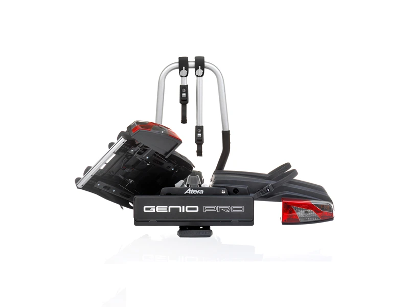 Atera Genio Pro er en praktisk cykelholder til nem montering på bilens anhængertræk, og som let og sikkert transporterer op til 2 cykler ad gangen. Cykelholderen er fremstillet med en praktisk, håndbetjente greb, som nemt får ved om cyklens stellet. Den passer til alle typer cykler; børnecykler, mountainbikes, racercykler – Alt sammen med dækbredde op til 4″.