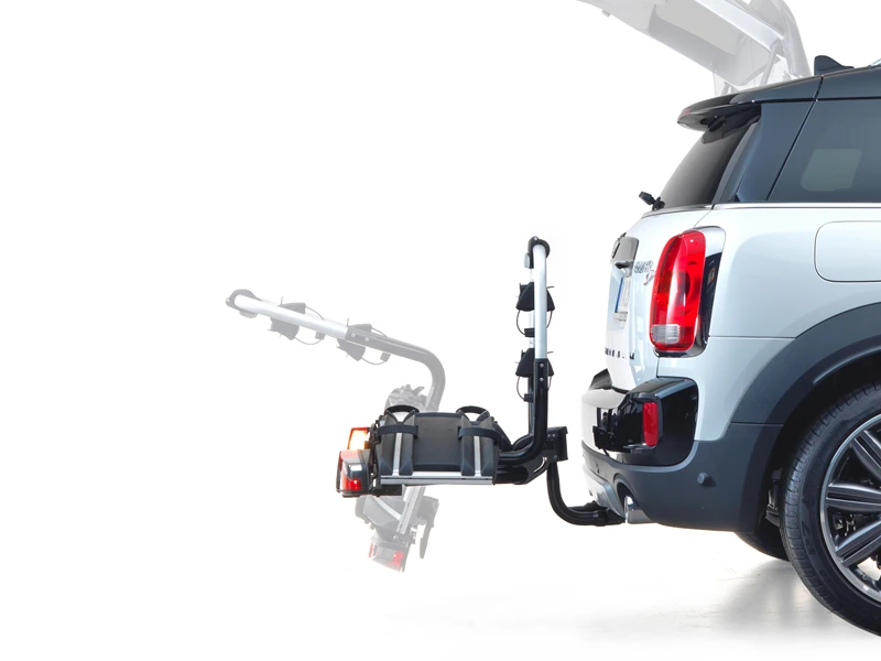 Cyklerne holdes effektivt på plads i cykelstativet ved hjælp af bløde remme, der både skåner fælgen samt giver sikkerhed under transport. Bagpå er der lygtesæt, inkl. tågelys og baklygte; som kobles sammen med det nye 13 pols stik.