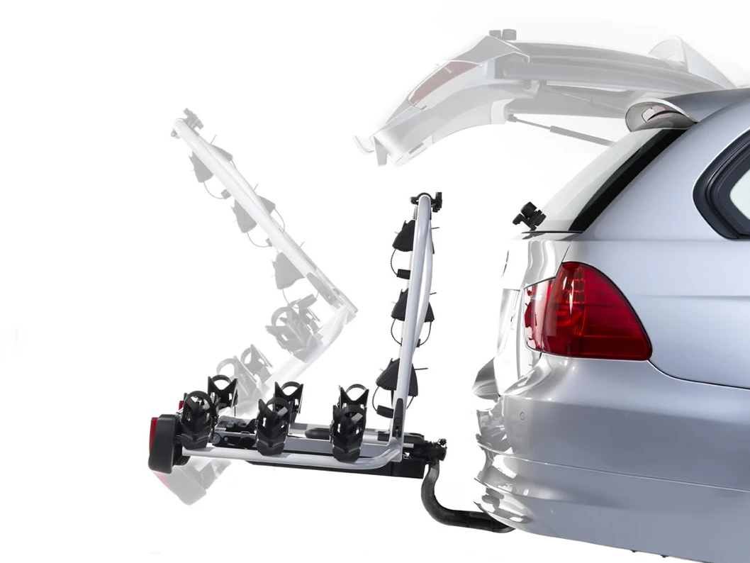 Med Atera Strada Sport M cykelholderen bliver det nemt at transportere hele familiens cykler. Cykleholderen har plads til tre cykler og giver endda mulighed for udbyggelse, hvis der er behov for at sætte en fjerde cykel på bilen. For at beskytte cyklerne så godt som muligt under transport, er cykelstativet fra Atera fremstillet med spænder i gode, bløde materialer, der sørger for at cyklerne ikke bliver ridset. Den praktiske holder monteres på bilens anhængertræk og kan tiltes bagud, så man nemt og hurtigt får adgang til bagagerummet, selvom holderen er læsset med cykler. Cykelholderen leveres samlet og kan anvendes til såvel almindelige cykler som el-cykler.