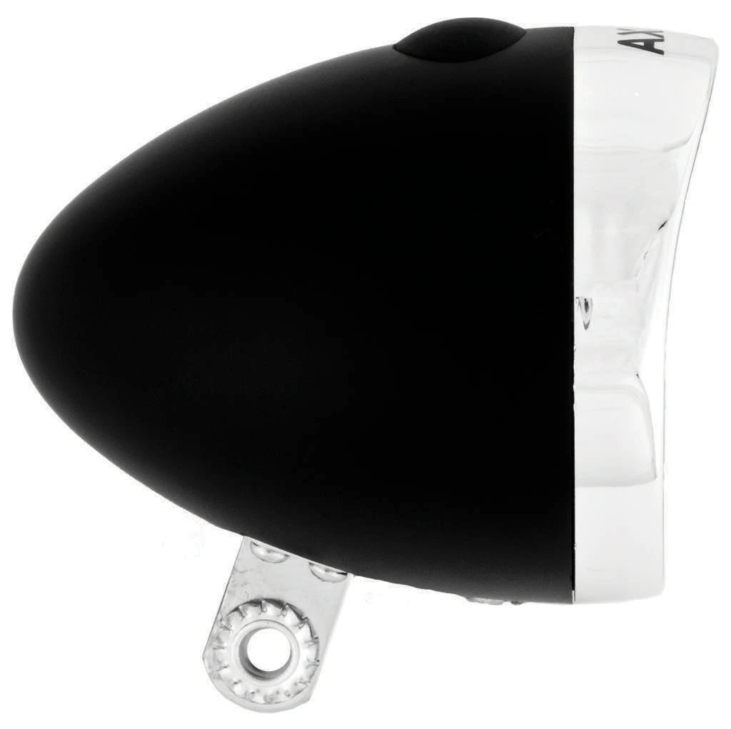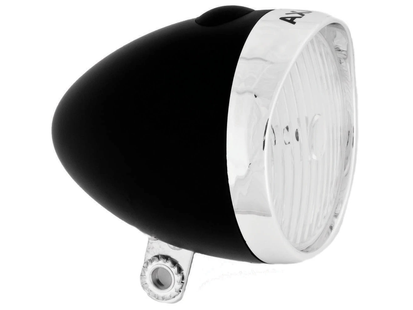 Denne Axa forlygte giver din cykel et klassisk udtryk. Lygten kommer uden beslag, men passer perfekt til montering på et frontladbeslag. Den er vandafvisende og derfor tåle at stå ude i regnen. Den har en praktisk tænd/sluk knap på oversiden, så du ikke skal rode efter den.