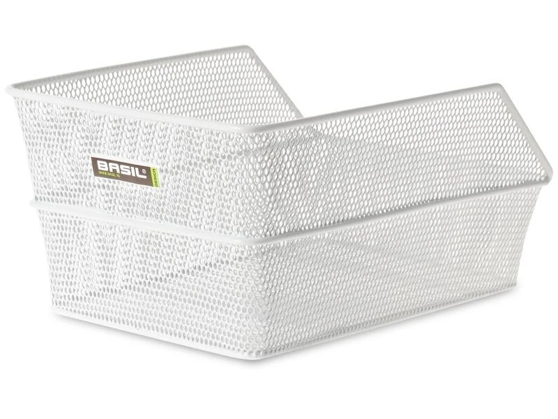 Basil Cento White er en smart cykelkurv i slidstærkt stålmateriale, der fastmonteres på cyklens bagagebærer. Cykelkurven har en forstærket konstruktion, og størrelsen passer perfekt til mindre rygsække eller tasker. Basil Cento White har målene 32x22x17 cm, og der medfølger beslag til montering.
