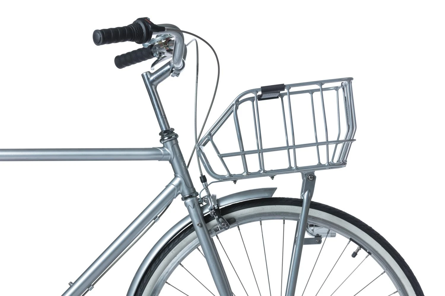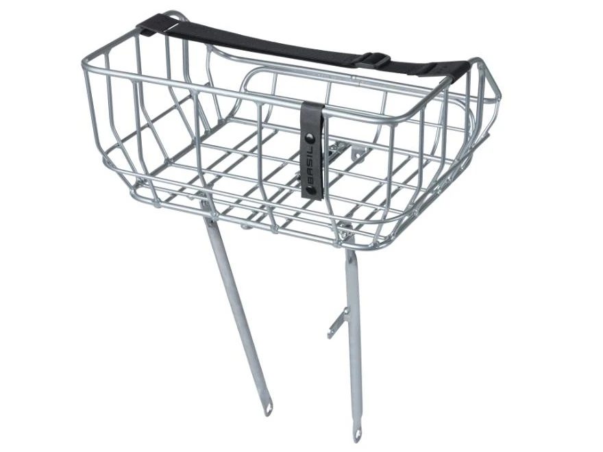 Basil Portland er en smart front kurv i god kvalitet der passer til 26″ og 28″ hjul. Frontladet er fremstillet i holdbart og slidstærkt, larkeret aluminium og kommer med en praktisk rem til fastgørelse af bagagen, så den er sikret forsvarligt under kørsel. Frontladet/kurven er bygget til en belastning på max. 10 kg. og monteres nemt ved forhjulets hjulbolte. Monteringstilbehør til Basil Portland frontladet medfølger.