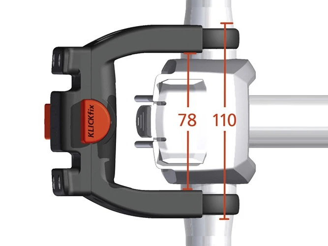 Klickfix styradapter, der er 22mm bredere end standardversionen og derfor gør det muligt også at montere en Klickfix cykelkurv på styret af elcyklen. Styradapteren kommer inklusiv låsefunktion, der sikrer, at cykelkurven eller styrtasken kan låses forsvarligt fast på styret.